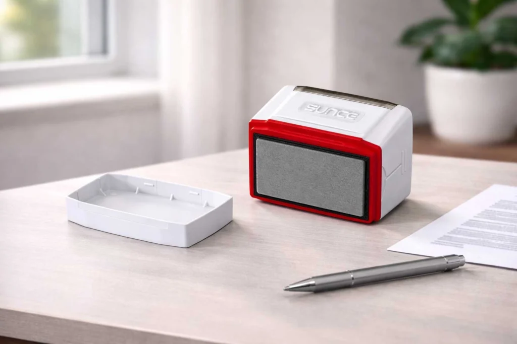 SUNCE also uses high-quality inks sourced from Japan, known for their reliability and consistent performance. These inks are designed to maintain strong visibility without fading easily, helping businesses ensure that their stamped documents remain clear and readable over time.